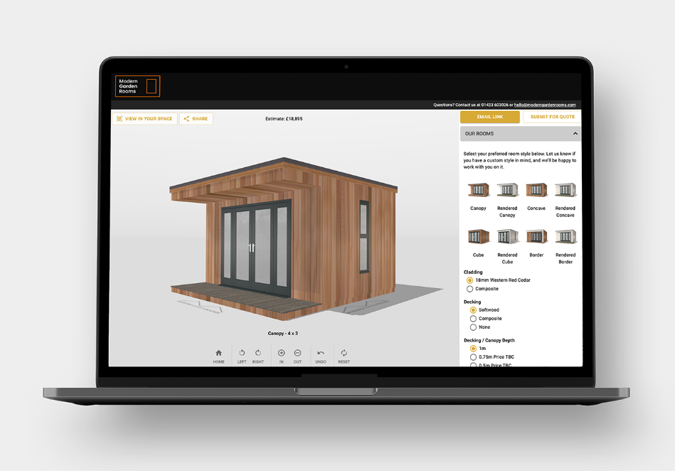 View an instant cost estimate, save your design, then submit your bespoke garden room for a detailed, free quotation from our expert team.